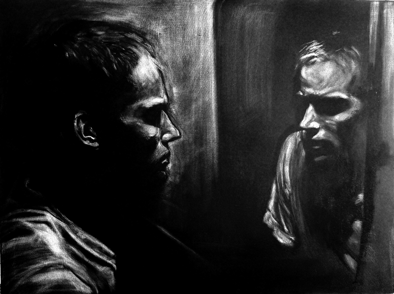 GF: I like to look through photographs that I've taken, old and new, to generate ideas for work. Most of the time as I'm out in the world or within my own, I'm studying my view. Often I'll see something in a way I hadn't seen it before--in a way that gives the scene and its participants new meaning. I'll grab my camera and capture the scene. Other times I'll get an image in my head, perhaps from a dream. I will recreate it, using myself or willing friends as the models in the scene, and photograph it. Once I've got a shot I can work with, I'll make adjustments using Photoshop and then print the photo out to work from.